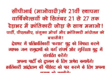 नक्सलियों की केंद्रीय कमेटी ने जारी की 11 पन्नों की बुकलेट, 21 से 27 सितंबर तक मनाएंगे स्थापना दिवस