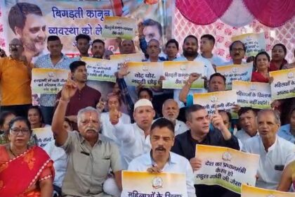 बिगड़ती कानून व्यवस्था पर कांग्रेस का हल्ला बोल, किया प्रदर्शन