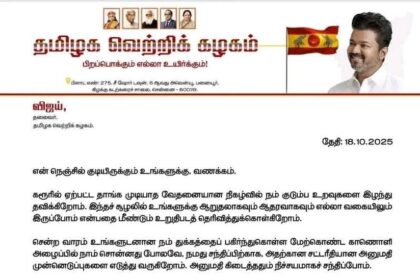 चेन्नई,। अभिनेता से नेता बने विजय की पार्टी तमिलगा वेत्री कझगम (टीवीके)…