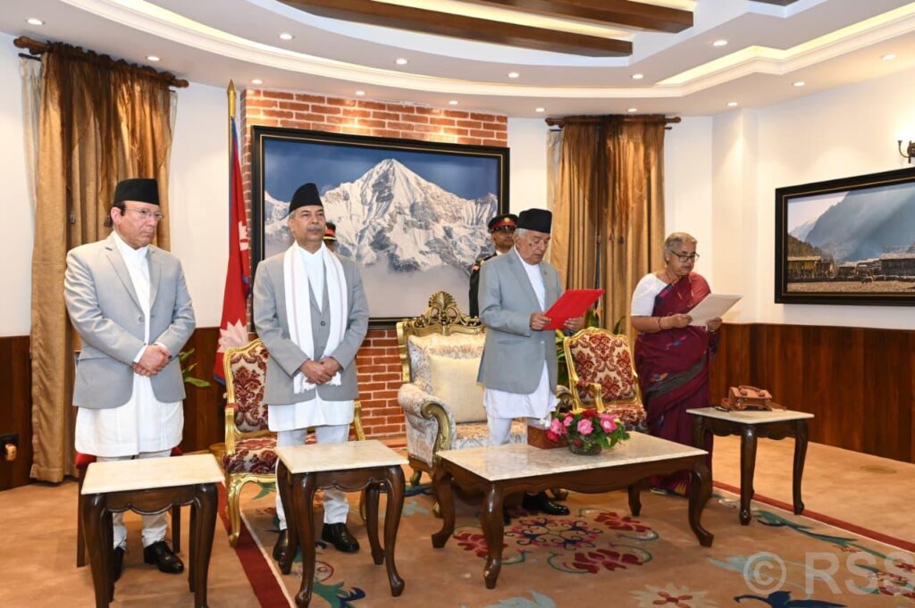 -शुक्रवार देर शाम राष्ट्रपति पौडेल ने सुशीला कार्की को दिलाई शपथ-नेपाल की पहली महिला प्रधानमंत्री बनीं पूर्व मुख्य न्यायाधीश कार्की-संसद विघटन का सीपीएन (यूएमएल) और माओवादी ने किया विरोध-मेयर बालेन शाह ने युवाओं की जीत बताते हुए फैसले पर खुशी जताई